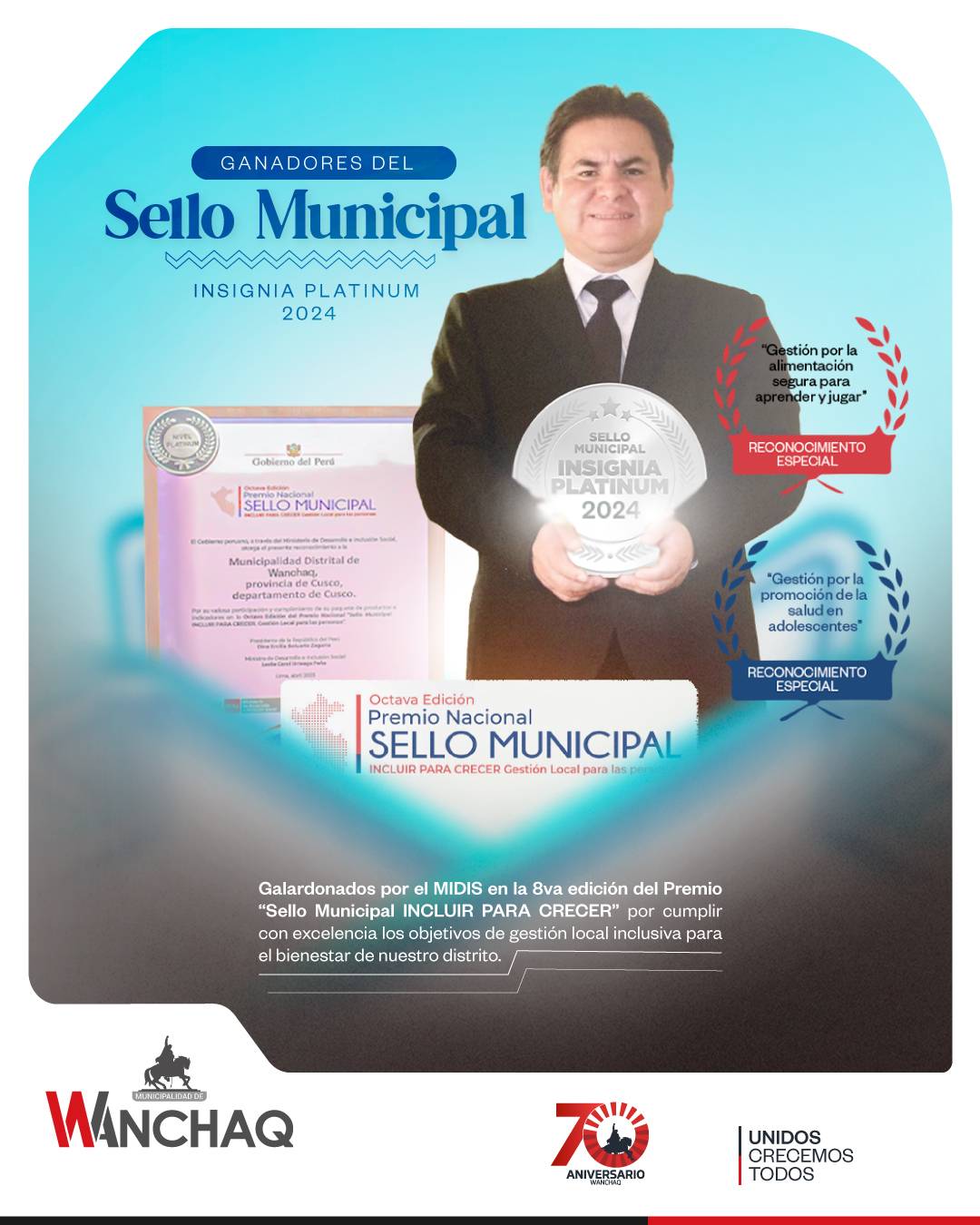 En el marco del Premio Nacional “Sello Municipal INCLUIR PARA CRECER. Gestión local para las personas” Octava edición 2024 y considerando las bases para el cumplimiento de los productos e indicadores, la Municipalidad Distrital de Wanchaq logró cumplir satisfactoriamente con los objetivos prioritarios obligatorios y optativos.